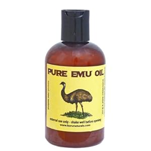 Australian natural emu oil Packaged in dark bottle to preserve all bioactive ingredients Featured in InStyle Magazine as Charlize Theron's favorite beauty product Excellent skin moisturizer and hair conditioner Emu Oil 4 fl.oz. Emu Oil is a traditional Australian Aboriginal medicine and natural skin and hair moisturizer. It is recognized as complementary medicine by the Therapeutic Goods Administration in Australia (TGA) for the treatment of burns, wounds, bruises, as ointments for dry cracked heels, for reducing scar formation in healed burn wounds, and as a pain reliever for bone, muscle, and joint disorders. Our emu oil is fully refined and contains all natural ingredients, including vitamins, minerals, and the essential fatty acids Omega 3 and 6. Please note that some producers sell a manufactured emu oil that has been clarified. This clarification process eliminates some of the most active ingredients of the product. Our emu oil is milky white, and each batch is analyzed to confirm that all essential ingredients are present at the natural concentrations. This oil is highly penetrating to the skin, and thus fully effective as topical treatment. InStyle Magazine featured actress Charlize Theron commenting on our product: "I'm not big into styling products, but I use this Australian oil to moisturize my hair."